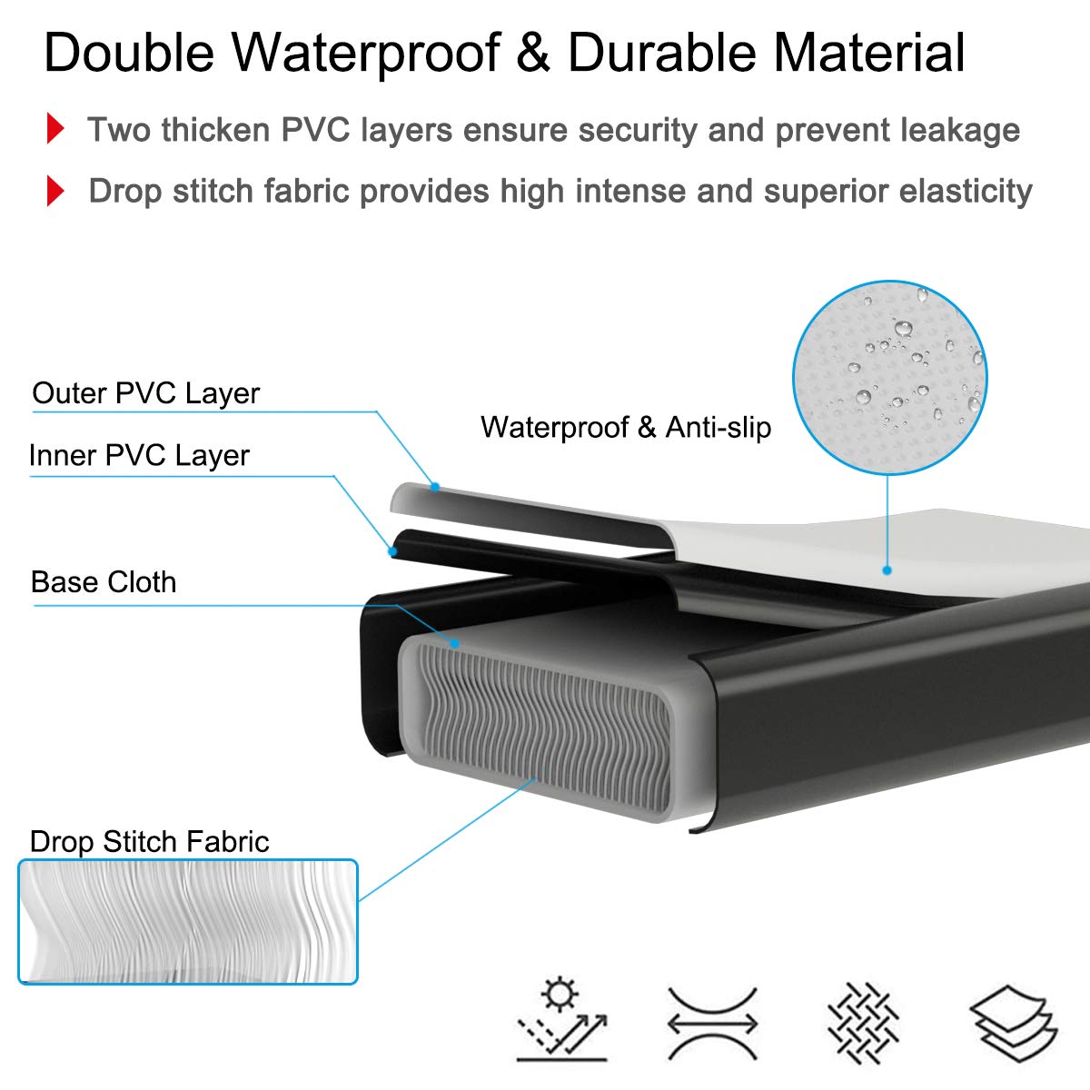 - Premium & Selective PVC Material -- This gymnastic mat is made from PVC material, featuring with two thick PVC layers of 0.7mm. The outer PVC layer has an anti-slip and waterproof surface to guarantee great safety during training. Drop stitch fabric between two PVC layers is durable enough without being torn easily.