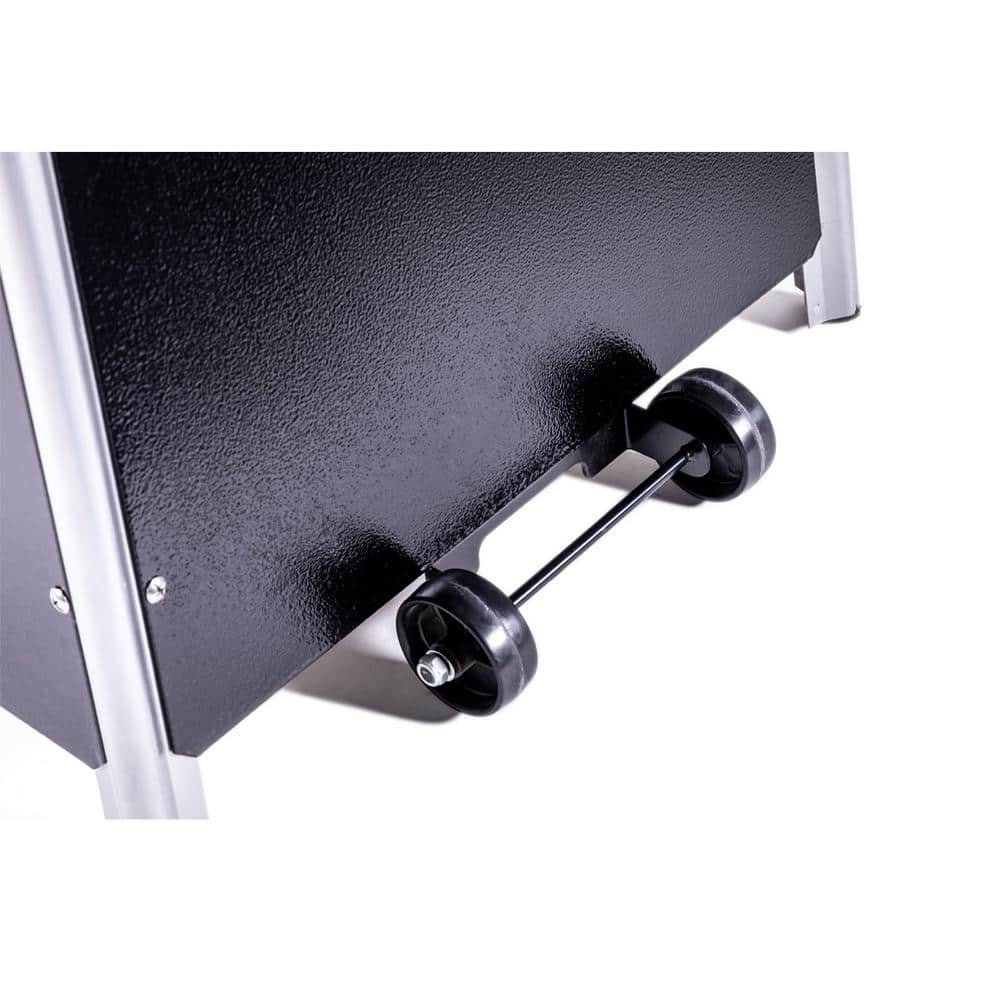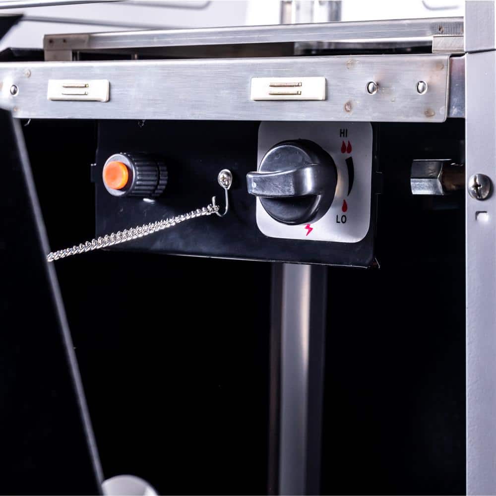 Solid 1-Piece Quartz glass tube heater makes a perfect matching to any patio settings. It is styled with durable accents. It features commercial-quality components and a rust, fade and corrosion-resistant finish, along with wheels for portability. Easy access door for propane tank exchange.