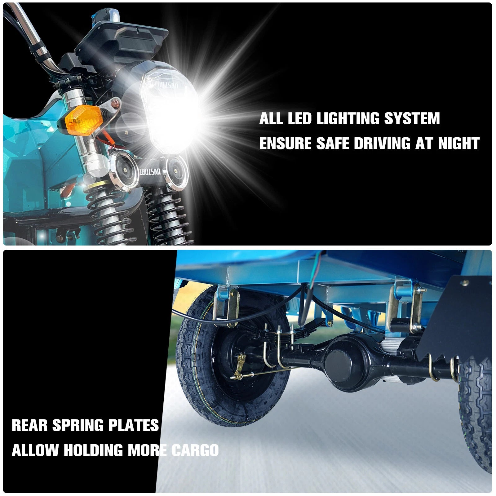 Your eco-friendly, high-value solution for daily cargo hauling. Designed for versatility, it easily transports building materials, farm goods like hay and timber, with a powerful 1000W motor offering 30 Miles driving range on a single charge. Its sturdy build holds up to 1.3~1.5 tons, perfect for tough jobs.