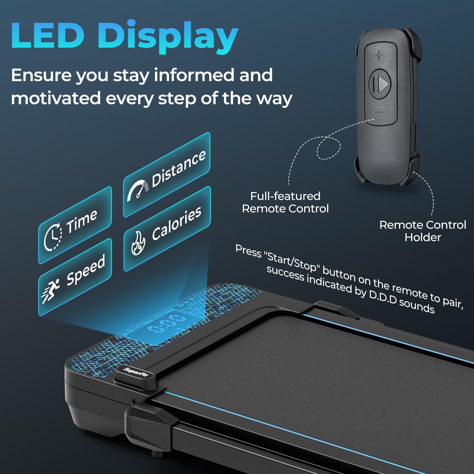 - 10-minute Data Retention: The LED display of this desk walking pad not only tracks your workout stats (speed, time, distance and calories) but also features a 10-minute data retention. Simply press the 'start/stop' button on the remote control to pause the treadmill. So you will have 10 minutes for a water break.