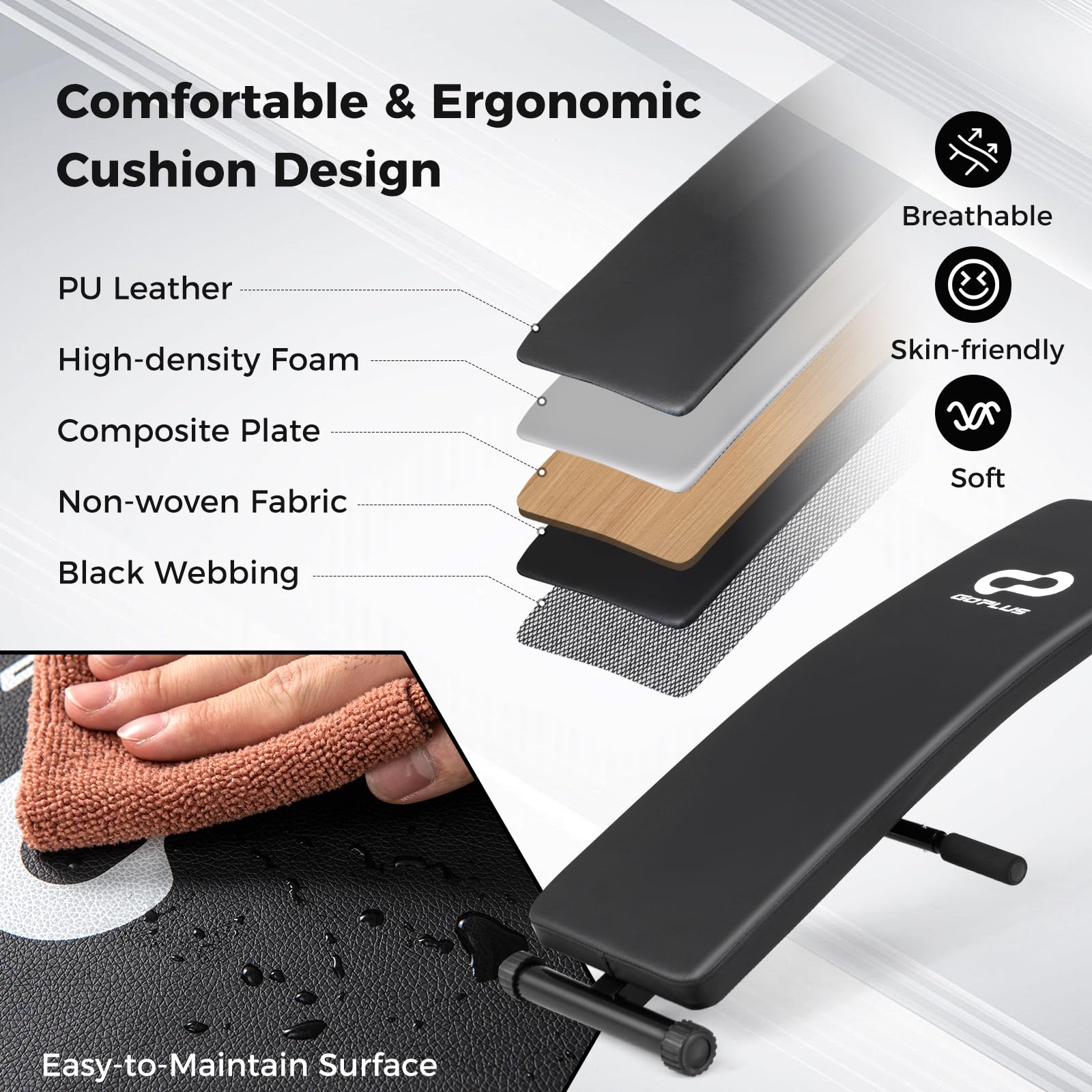 Goplus Adjustable Decline Sit Up Bench for Exercise, Foldable Curved Slant Bench with High Density Foam Cushioned Seat