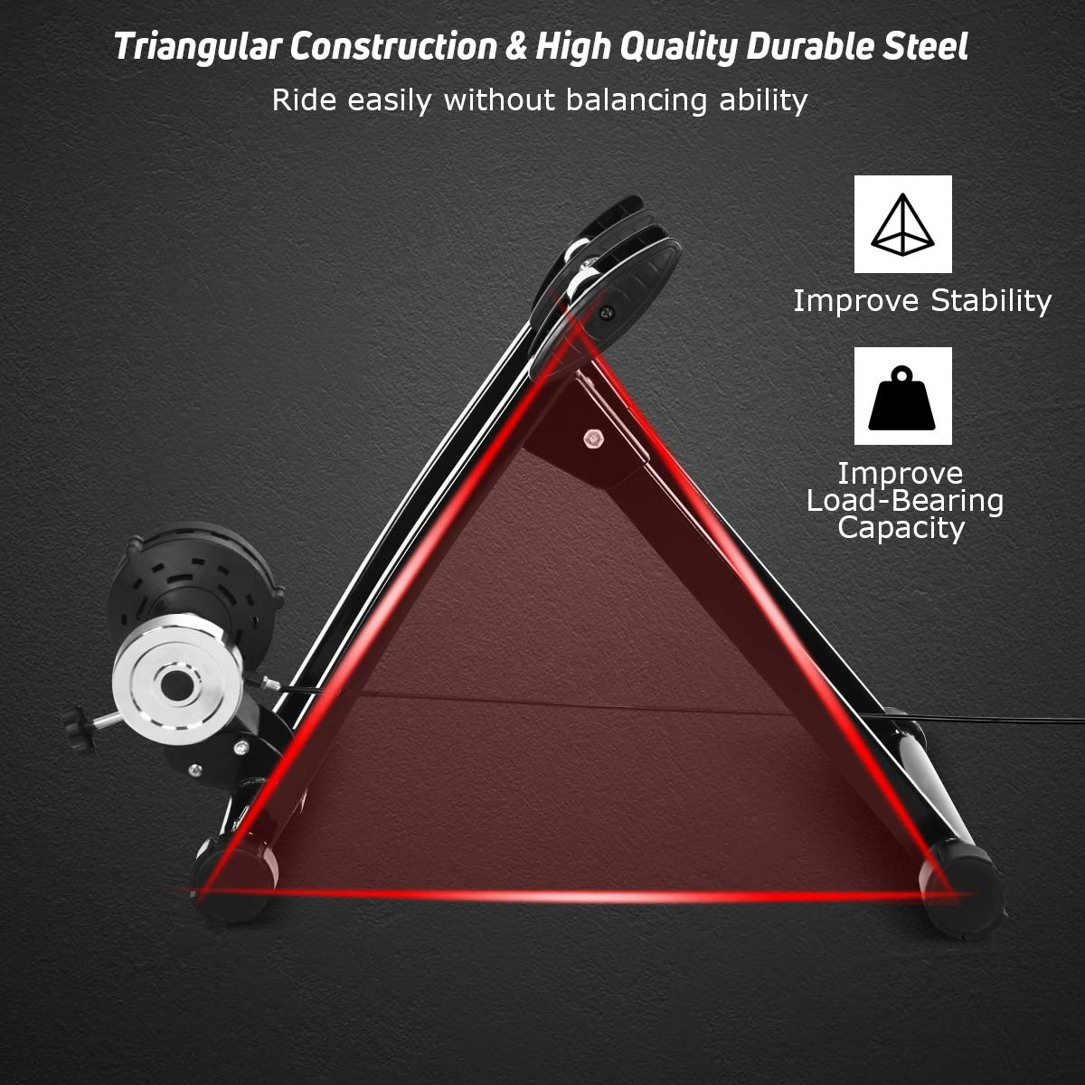 - Available in 8 Levels Resistance: Our bike training stand can adjust to 8 resistance levels. Exercisers can choose different levels of difficulty according to their own needs. The first few levels make you feel like you are riding on the road. The next few levels can make you feel like riding on a mountain road.