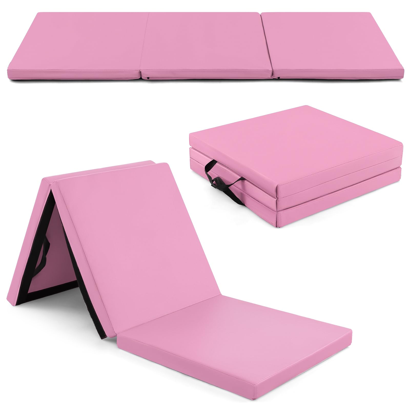 - Foldable & Portable Design: This gymnastics mat features a tri-fold construction and reinforced carrying handles, which makes it easy for users to carry and store. The net weight is only 4.5 lbs. Unfolded dimension: 6' x 2' x 2' (LxWxH). Folded dimension: 2' x 2' x 6' (LxWxH).