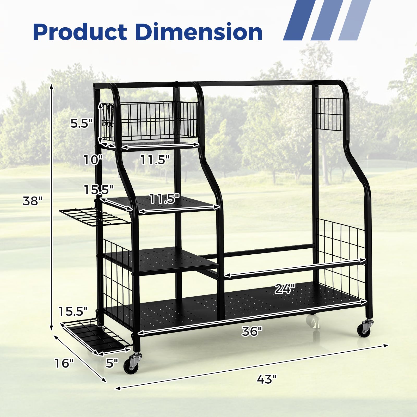 - ???¡¾Suitable for Various Scenarios¡¿ This multi-functional golfing equipment storage rack will be a great addition to multiple occasions, such as home, golf club and garage. Product dimension: 43' x 16' x 38'/110 cm x 41 cm x 97 cm (L x W x H).