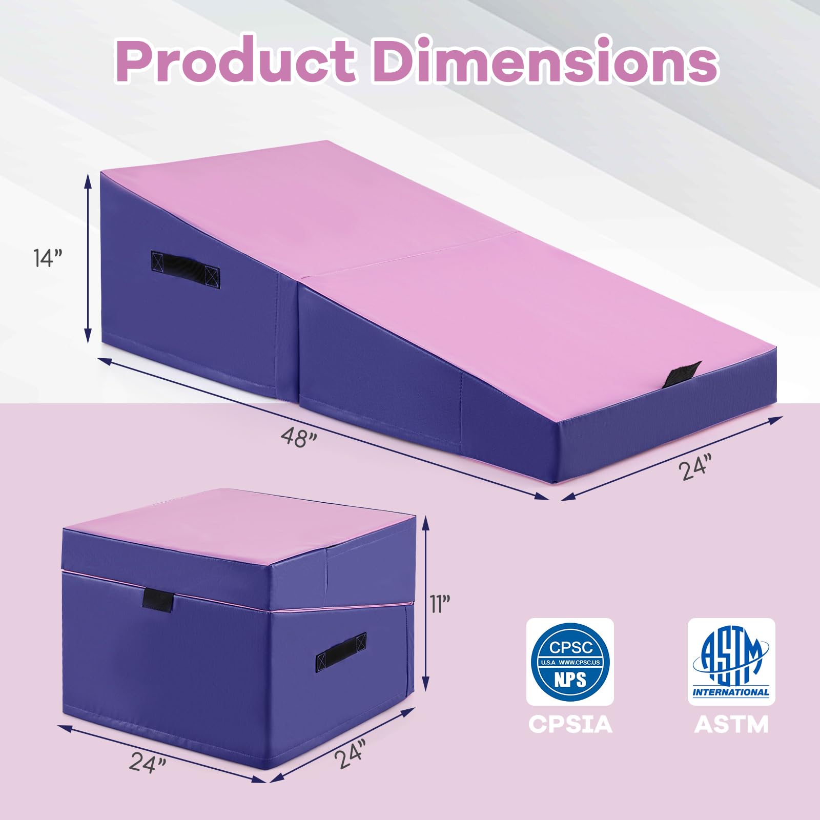 - ¡¾Foldable Design for Multi-purpose Use¡¿ This ergonomic mat offers a perfect balance of comfort and support, suitable for tumbling, exercise programs, gymnastics, and stretching. Unfold the mat to use as a gymnastics mat or take it as a jumping box when folded.