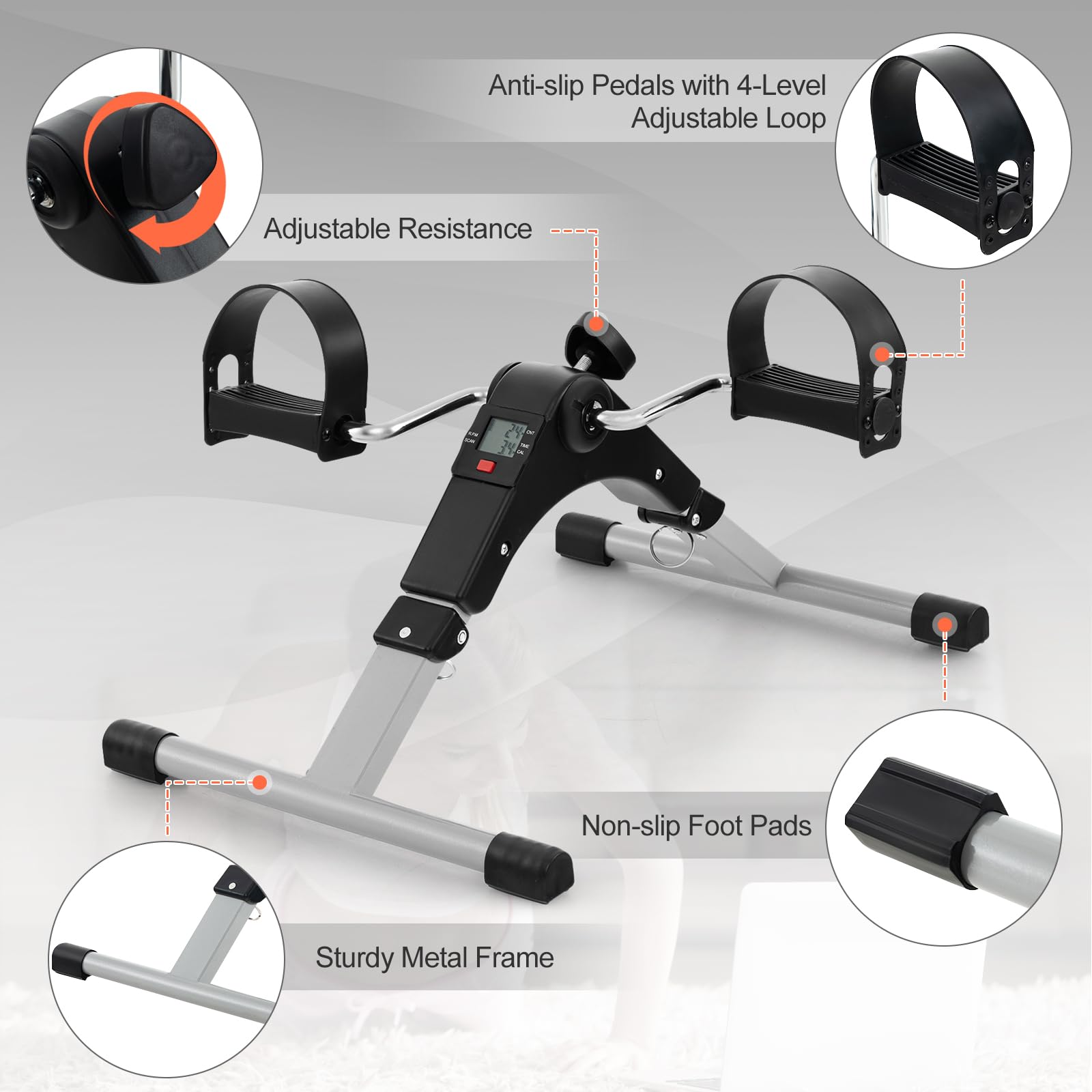 - Durable Construction: This pedal exerciser is made from heavy duty iron frame and with 250LBS weight capacity. The compact and stable design keeps the pedal exerciser from wobbling and sliding even when user increases the hand or leg speed while exercising.