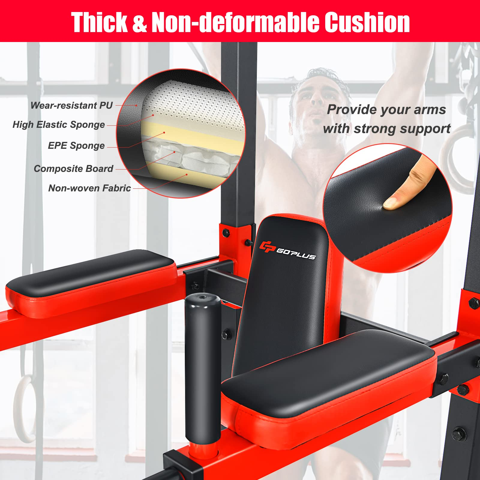 Our power tower serves as a multi-functional workout station, allowing you to perform a variety of exercises in different positions to achieve full-body workout and reach your fitness goals. Its main frame is entirely crafted with 1.7mm super sturdy steel frame, which is thicker and heavier than other models on the market. This pull up station will assist you in achieving higher fitness goals to realize body-shaping, fat burning and muscle building in a high-efficiency way. It is suitable for most people and you can keep fit together with your family and friends!