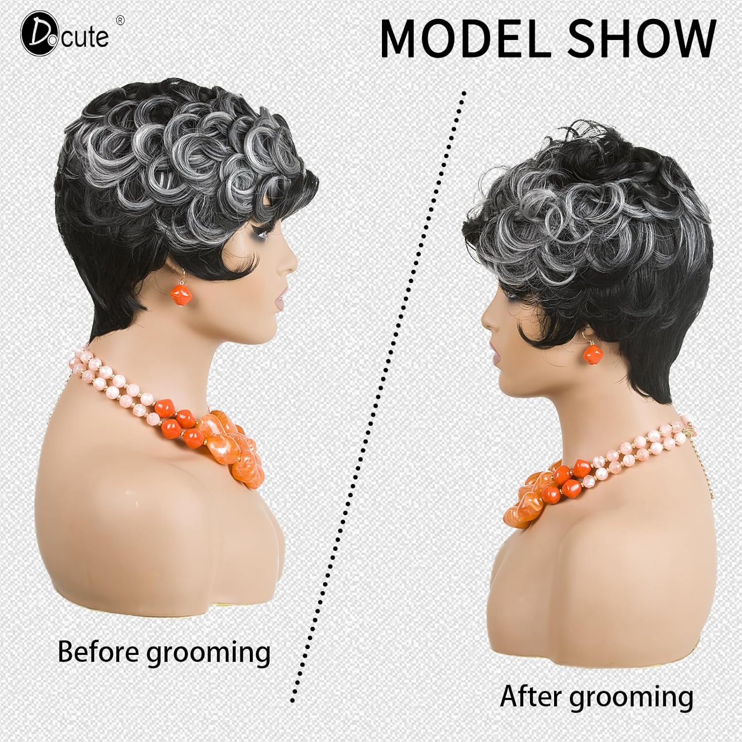 - 🌸New options, New look:If you want a new fresh look, you have to be brave and try these beautiful short pixie cut hair. And all the beautiful Black Ladies want their own different styles, the classic Grey pixie wig is a great option.