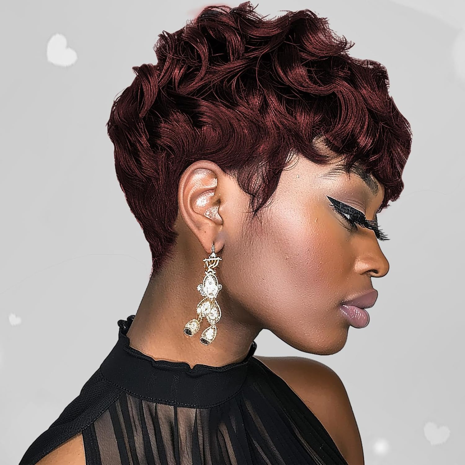 | Style | Pixie Short Hair with Layered Micro Curl and Bangs |