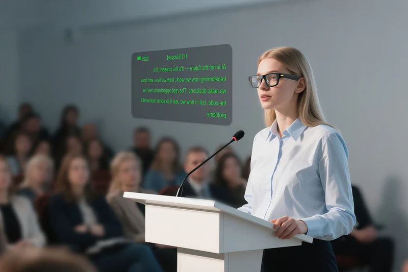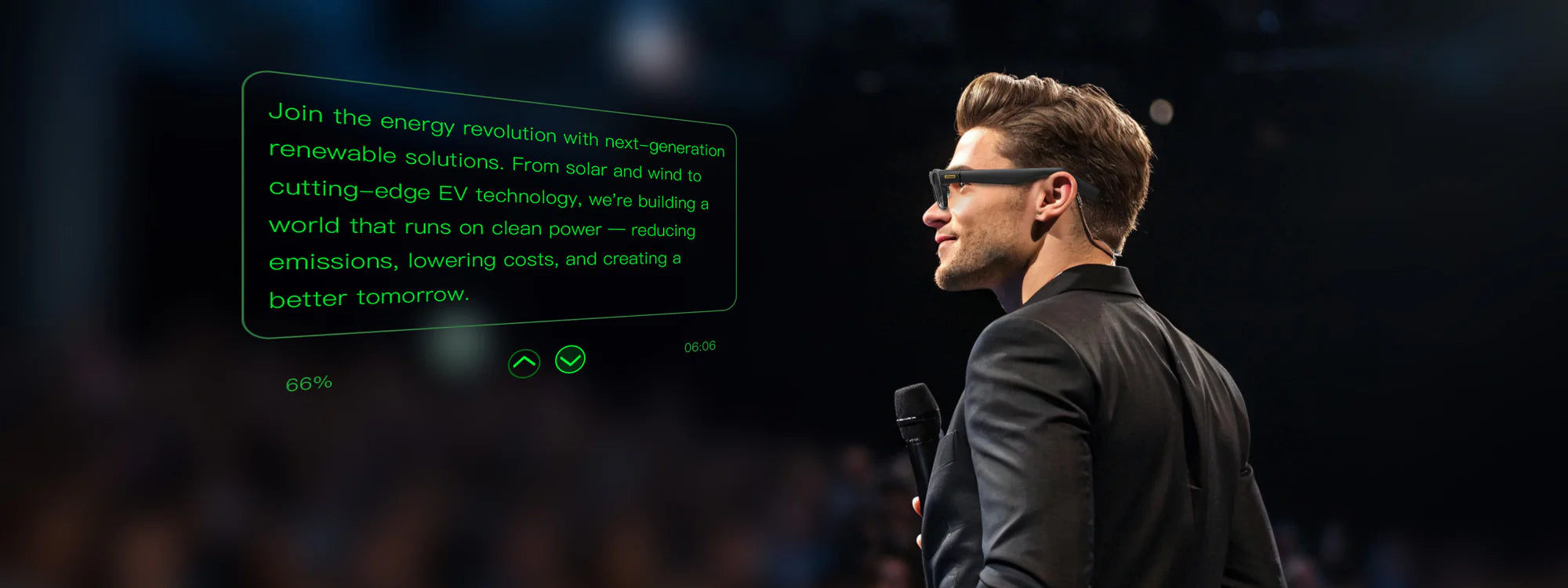 With the built-in teleprompter, your script appears right in your line of sight—clear, hands-free, and easy to follow. Just upload your text via the iTOUR AR app and speak with confidence, wherever you are.