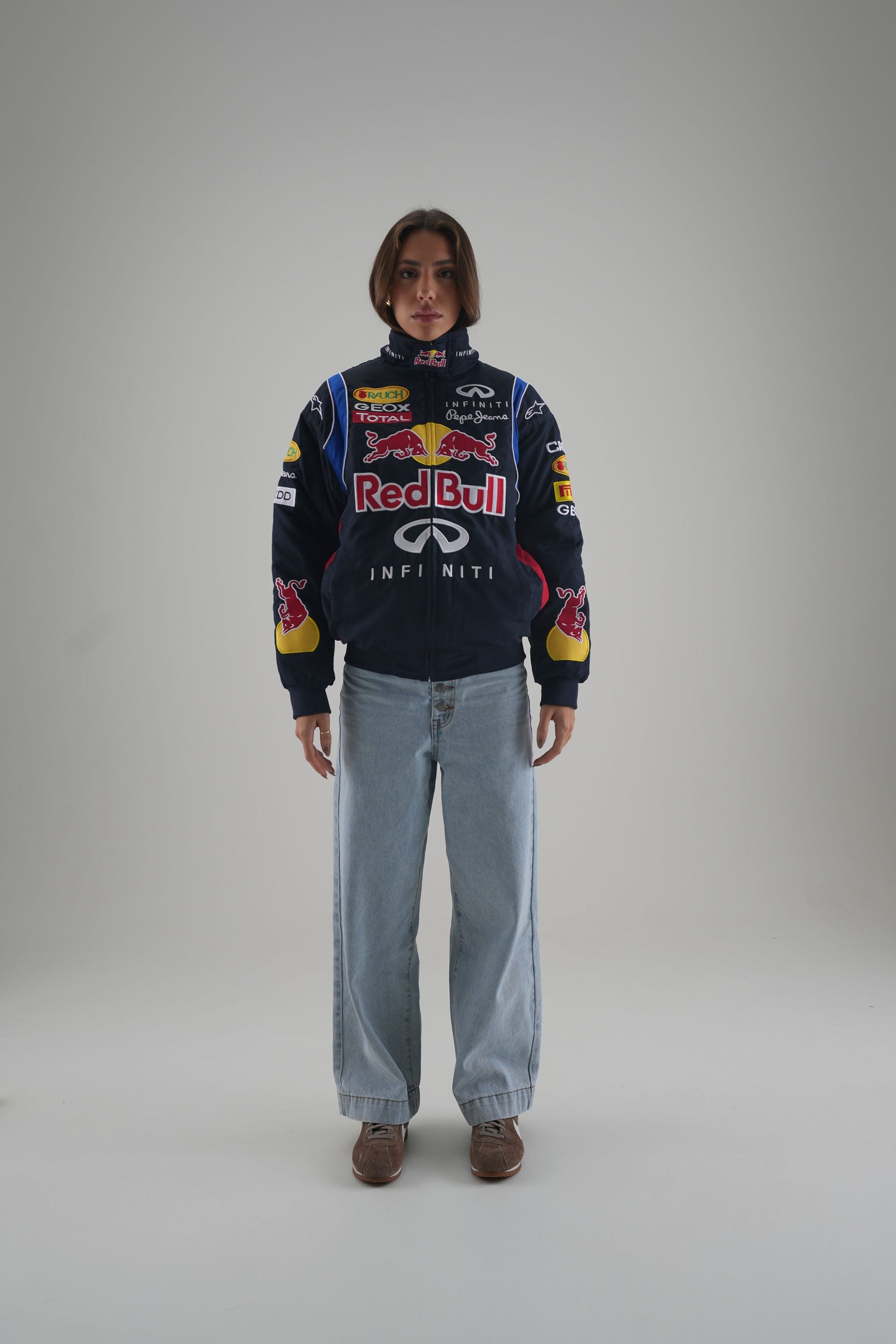Fuelled by speed and adrenaline, the Red Bull Racing F1 Jacket captures the spirit of modern racing with a vintage twist. Featuring throwback sponsor patches, classic Red Bull branding, and a race-ready fit, this jacket bridges past and present with bold energy. For fans who live life in the fast lane.